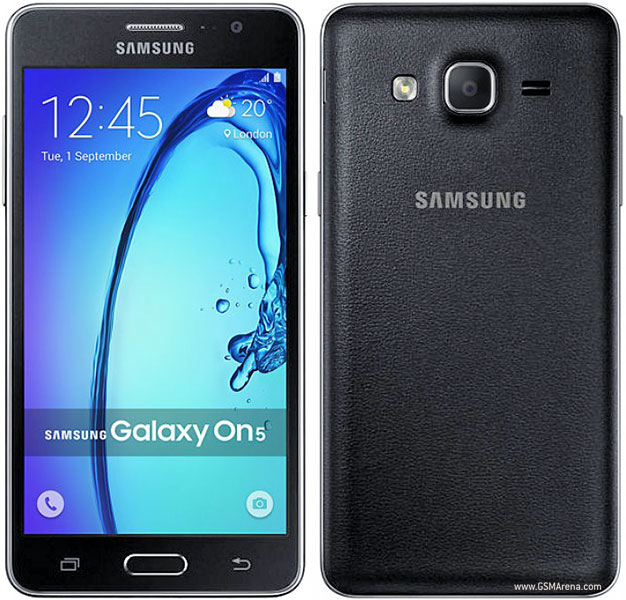 Galaxy On5 diperkenalkan pada bulan Oktober 2015 dan dirilis pada bulan November 2015, bentuknya tidak terlalu tipis (8.5 mm) dengan ukuran dimensi 142.3 x 72.1 x 8.5 mm dan bobot 149 g, pilihan warnanya ada 3 (hitam, emas, putih), sudah 4G LTE dan sanggup pakai 2 kartu SIM yang ukuran Micro.